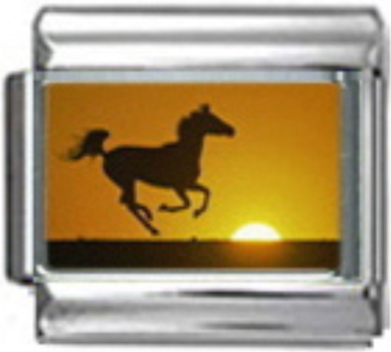 STYLYSH CHARMS Galloping Horse at Sunset Photo Italian 9mm Link HO004 Fits Traditional Classic