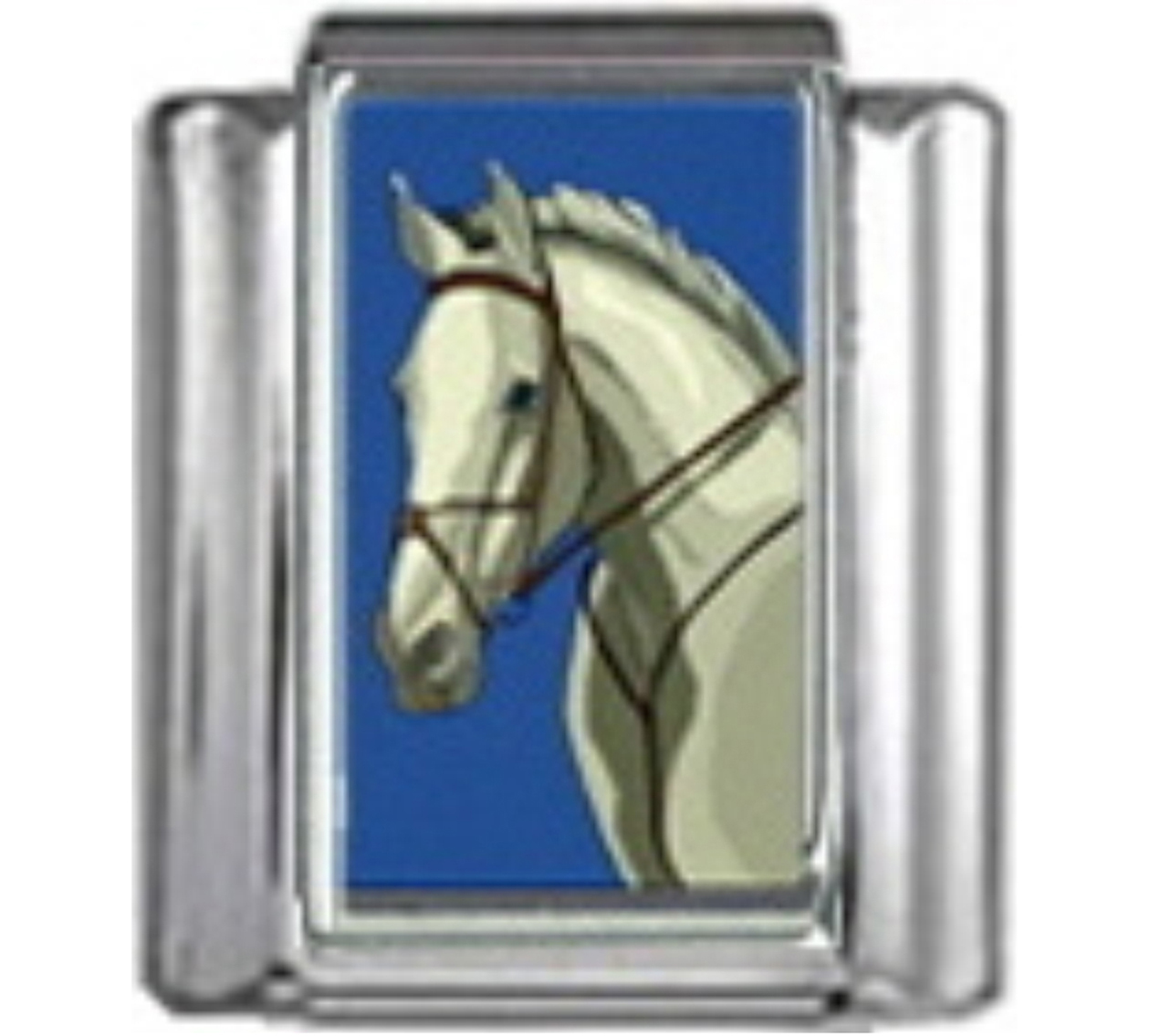 STYLYSH CHARMS White Horse Hand Drawn Photo Italian 9mm Link HO014 Fits Traditional Classic