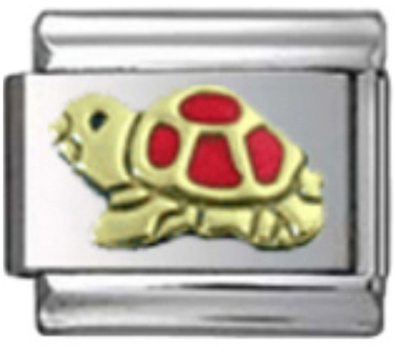 STYLYSH CHARMS Tortoise Turtle RED Enamel Italian 9mm Link AN012 Fits Traditional Classic