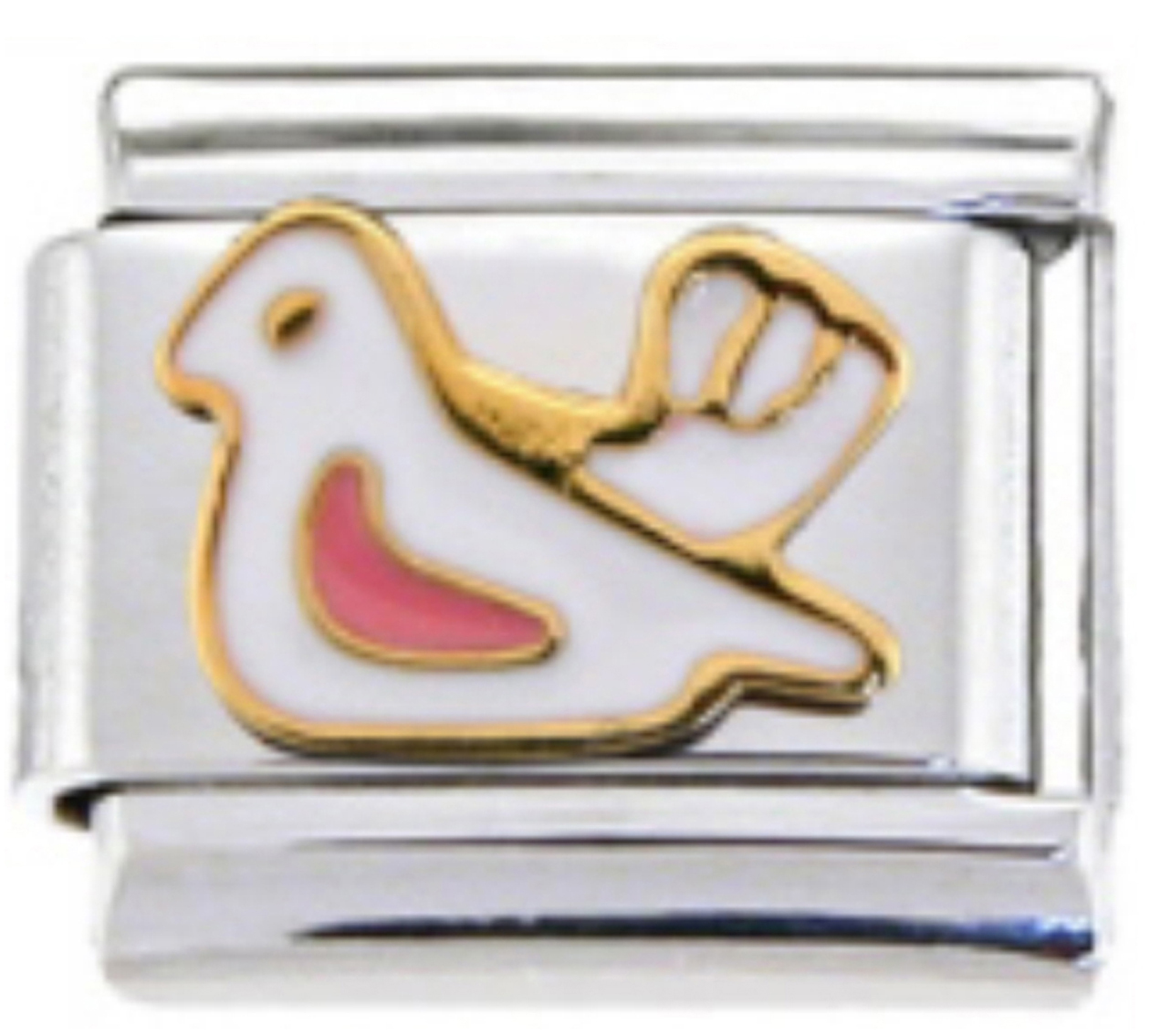 STYLYSH CHARMS Dove White Bird of Peace Enamel Italian 9mm Link BI109 Fits Traditional Classic