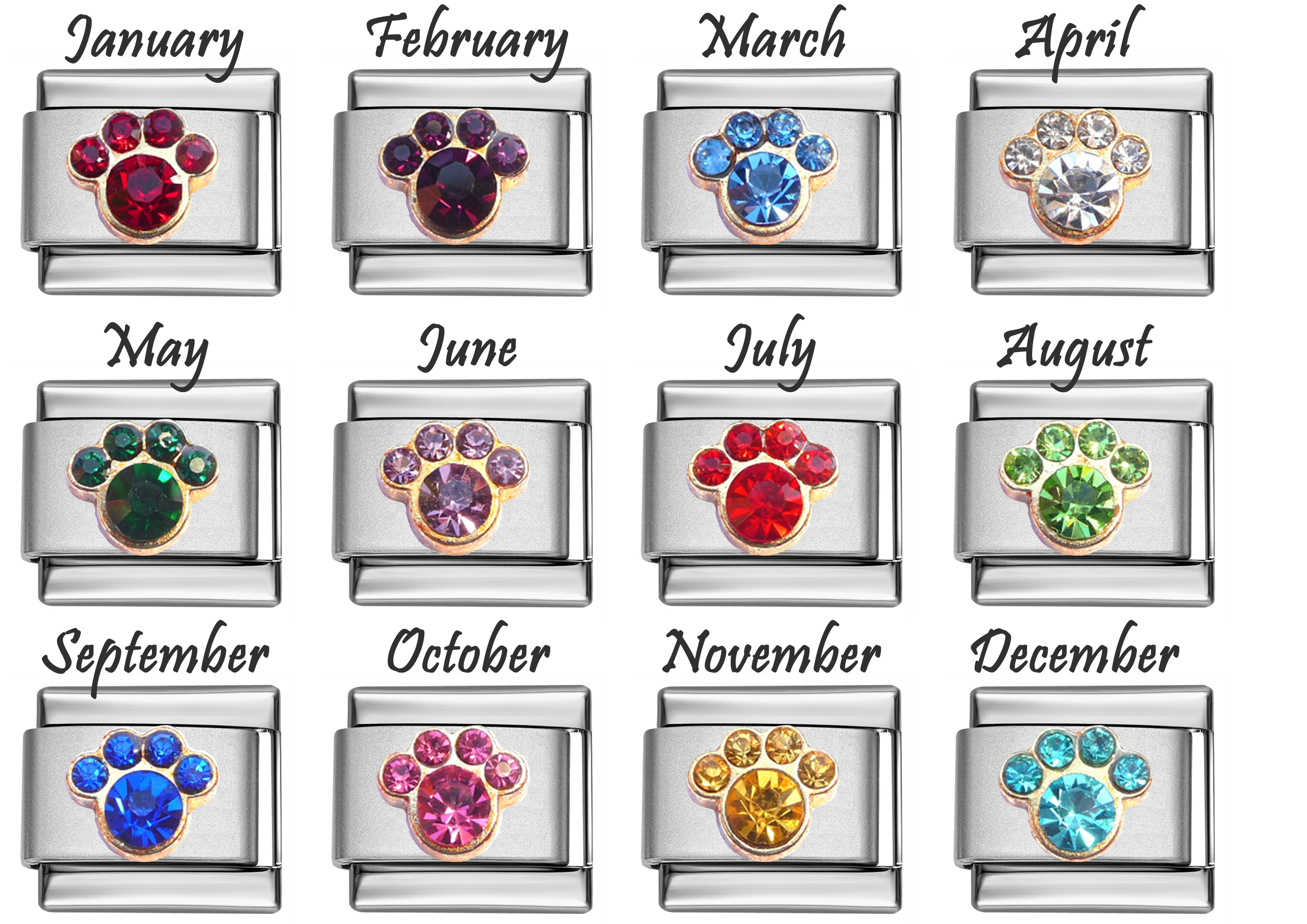 BIRTHSTONE BIRTHDAY PET PAW CZ RHINESTONES 9mm Charm x1 ITALIAN CHARM - JAN to DEC