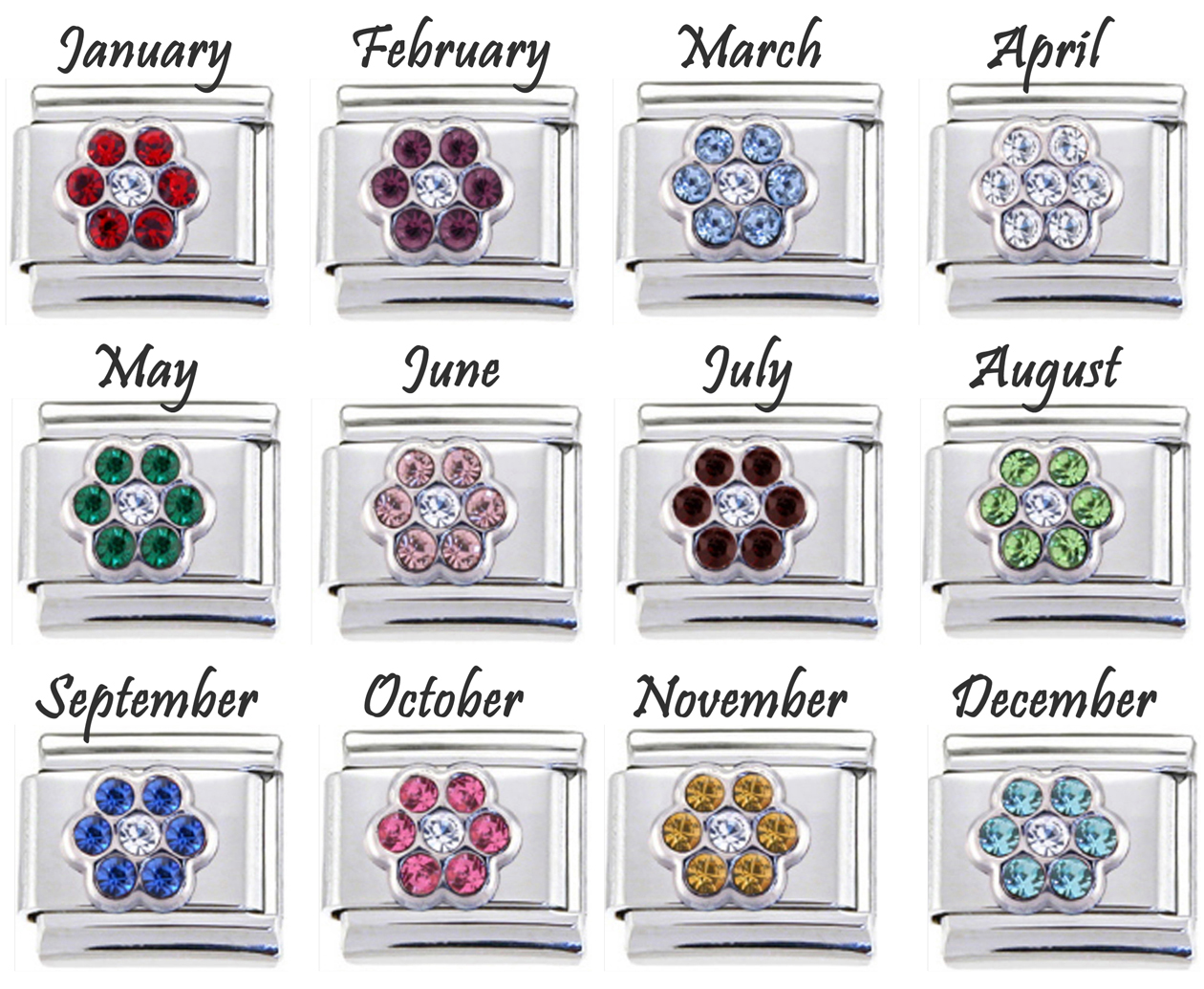 BIRTHSTONE BIRTHDAY FLOWER CZ RHINESTONES 9mm Charm x1 ITALIAN CHARM - JAN to DEC