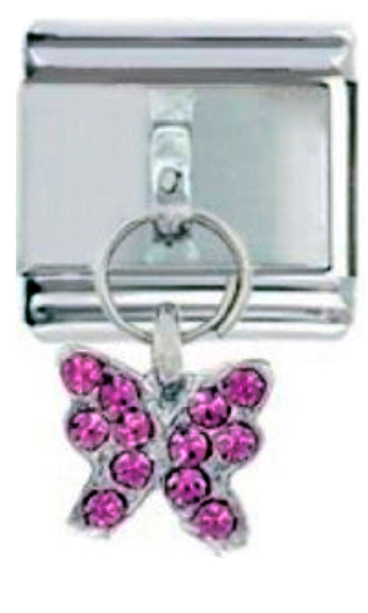 STYLYSH CHARMS Butterfly Rhinestones Dangle Italian 9mm Link BI243 Fits Traditional Classic