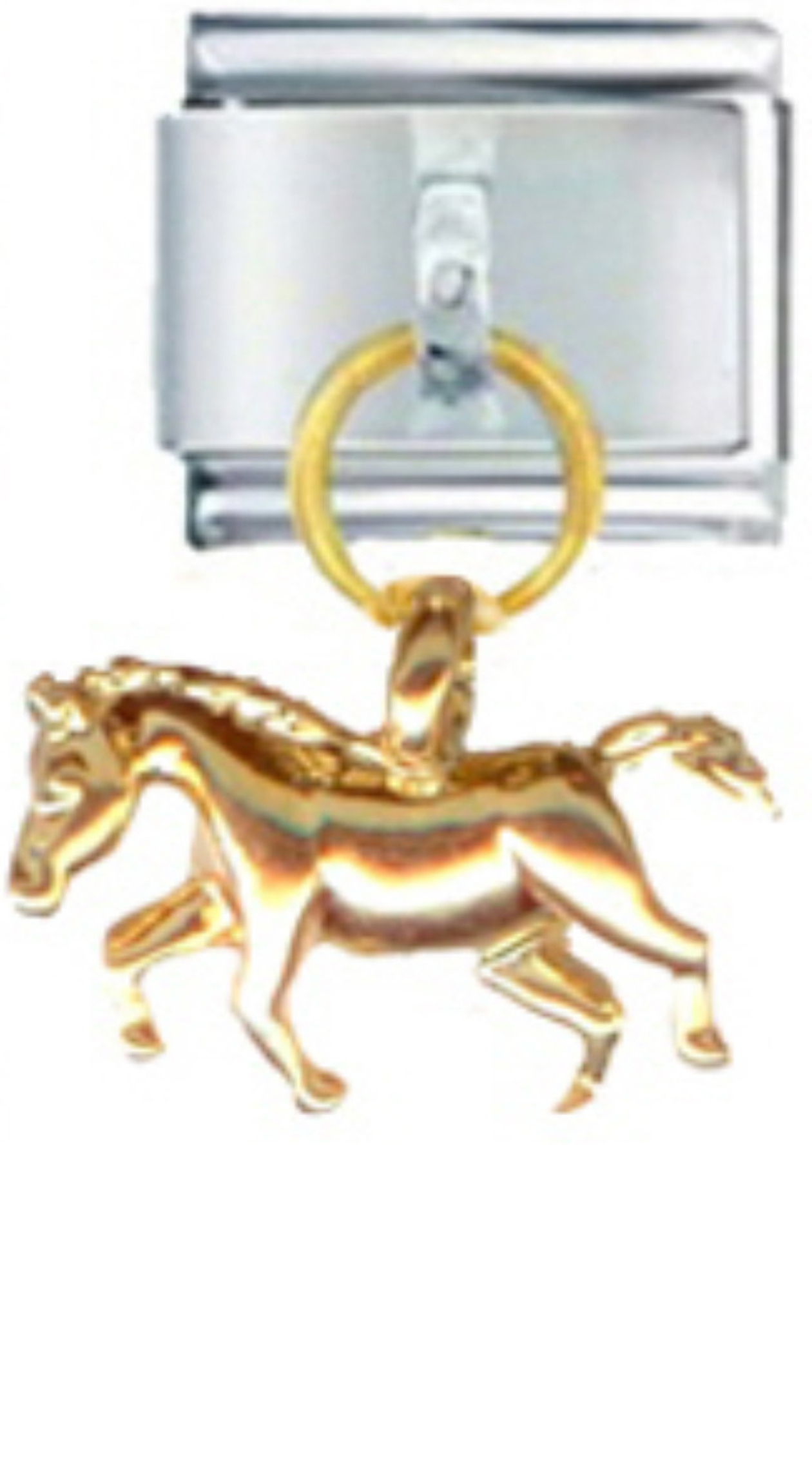 STYLYSH CHARMS Horse Gold Tone Dangle Italian 9mm Link HO064 Fits Traditional Classic