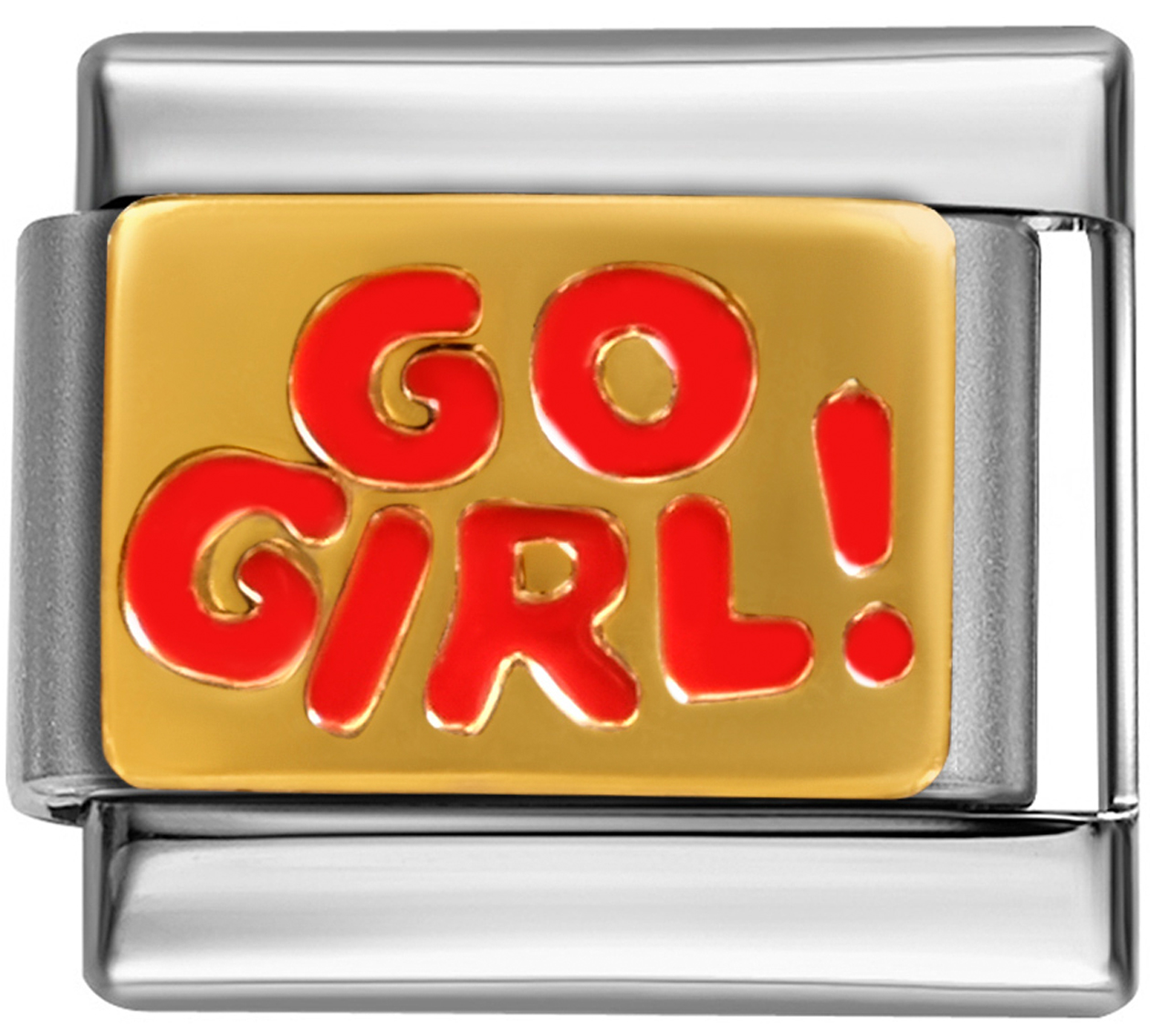 STYLYSH CHARMS GO Girl Gold Tone Red Enamel Italian 9mm Link NC034 Fits Traditional Classic