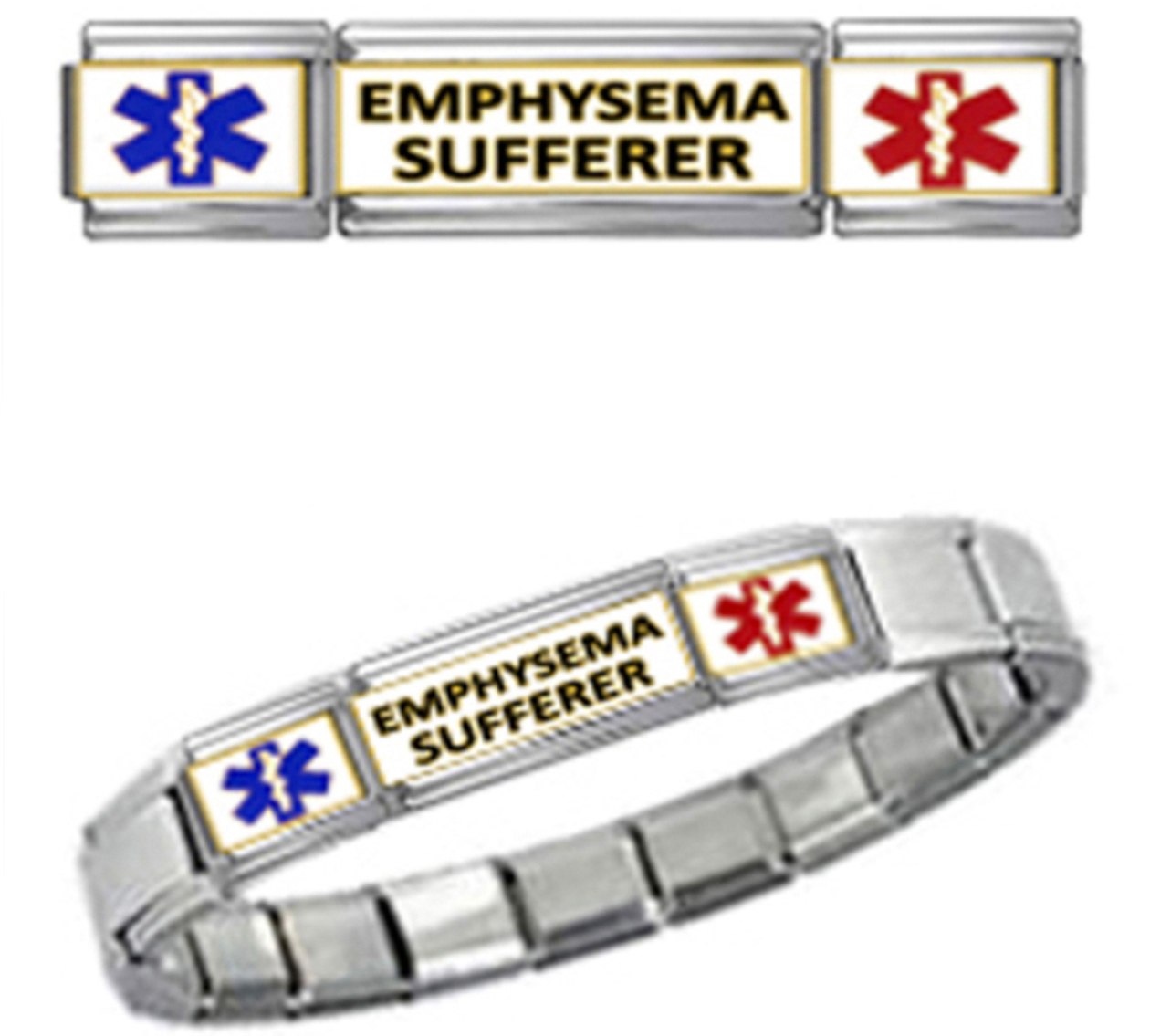 EMPHYSEMA SUFFERER MEDICAL ID 9mm + Italian Charm SILVER TONE MATTE BRUSHED Starter Bracelet