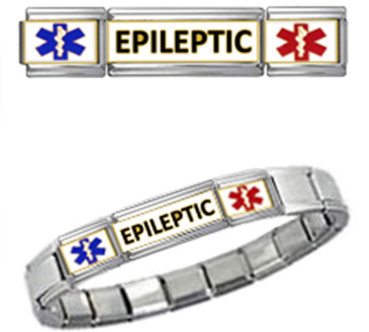 EPILEPTIC MEDICAL ID 9mm + Italian Charm SILVER TONE MATTE BRUSHED Starter Bracelet