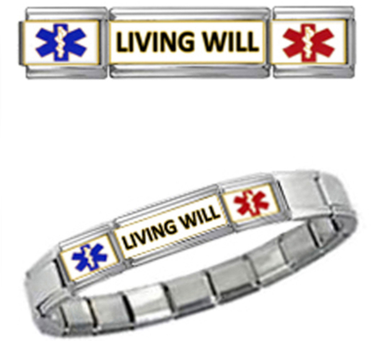 LIVING WILL MEDICAL ID 9mm + Italian Charm SILVER TONE SHINY POLISHED Starter Bracelet